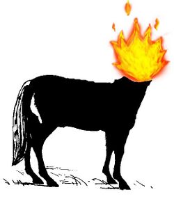 Despite being headless, the Mule still neighs (usually very loud), and sometimes it moans like a crying woman. It also has a bridle tied to its non-existent mouth, and spews fire through its non-existent nostrils (or, in some versions, from its severed neck).