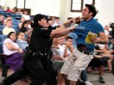 On September 17, 2007, while attending a talk by John Kerry at the University of Florida, Meyer was tasered by the police and subsequently arrested.[1] His crime? Speaking past his allotted time and asking Kerry a question about a sensitive subject.[2] Meyer was released after a night in jail; two of the officers involved were put on leave. After his microphone was shut off, he was escorted aside and tried to break away. As he was doing so, the officers forced him to the ground, handcuffed him and then tasered him. During the tasing, he reportedly shouted, "Don't tase me, bro!" giving rise to a new meme. The event, caught on video, briefly made him a minor martyr to "free speech."