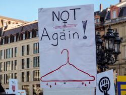 Straightened-out wire clothes hangers have been used to perform unsafe and/or illegal abortions (frequently self-induced) by inserting the wire through the cervix and into the uterus, in order to cause the uterus to expel its contents. This life-threatening method poses severe risks to the person on whom it is performed.[13] At pro-choice protests, wire clothes hangers have been used as symbols of the danger of criminalizing elective abortion.[13][14]