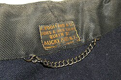 Referred to as a coat-hanger, the small piece of fabric attached to the nape of the neck inside a coat or jacket was developed in 1830, enabling the hanging of such types of outer clothing.[2] Around 1850, small chains were developed to be used in place of fabric loops, though the use of loops of fabric continued, and are still a feature present in many garments today.[2]