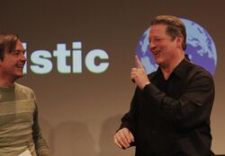After his term as vice-president ended in 2001, Gore remained prominent as an author and environmental activist, whose work in climate change activism earned him (jointly with the IPCC) the Nobel Peace Prize in 2007. Gore is the founder and current chair of The Climate Reality Project, the co-founder and chair of Generation Investment Management, the now-defunct Current TV network, a member of the Board of Directors of Apple Inc. and a senior adviser to Google.[1] Gore is also a partner in the venture capital firm Kleiner Perkins, heading its climate change solutions group.[2][3] He has served as a visiting professor at Middle Tennessee State University, Columbia University Graduate School of Journalism, Fisk University and the University of California, Los Angeles.[1][4][5][6] He served on the Board of Directors of World Resources Institute.[7]
