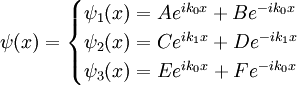 , we must solve the time-independent Schrodinger equation. The wavefunction is defined in the three regions as: