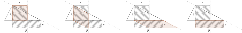 The square of the altitude can be transformed into an rectangle of equal area with sides p and q with the help of three shear mappings (shear mappings preserve the area):