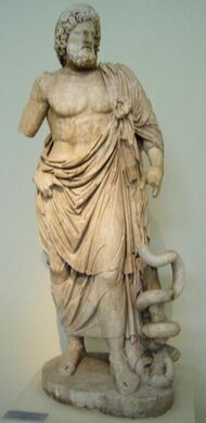 Serpents are connected with poison and medicine. The snake's venom is associated with the chemicals of plants and fungi[11][12][13] that have the power to either heal, poison or provide expanded consciousness (and even the elixir of life and immortality) through divine intoxication. Because of its herbal knowledge and entheogenic association the snake was often considered one of the wisest animals, being (close to the) divine. Its divine aspect combined with its habitat in the earth between the roots of plants made it an animal with chthonic properties connected to the afterlife and immortality. The deified Greek physician Asclepius, as god of medicine and healing, carried a staff with one serpent wrapped around it, which has become the symbol of modern medicine. Moses also had a replica of a serpent on a pole, the Nehushtan, mentioned in Numbers 21:8.