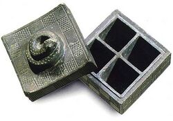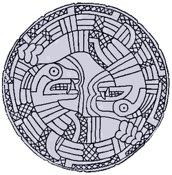 In the surrounding region, serpent cult objects figured in other cultures. A late Bronze Age Hittite shrine in northern Syria contained a bronze statue of a god holding a serpent in one hand and a staff in the other.[21] In 6th-century Babylon, a pair of bronze serpents flanked each of the four doorways of the temple of Esagila.[22] At the Babylonian New Year's festival, the priest was to commission from a woodworker, a metalworker and a goldsmith two images one of which "shall hold in its left hand a snake of cedar, raising its right [hand] to the god Nabu".[23] At the tell of Tepe Gawra, at least seventeen Early Bronze Age Assyrian bronze serpents were recovered.[24]