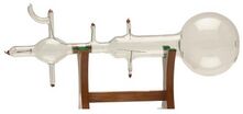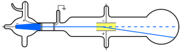 A Crookes tube is a sealed glass container in which two electrodes are separated by a vacuum. When a voltage is applied across the electrodes, cathode rays are generated, creating a glowing patch where they strike the glass at the opposite end of the tube. Through experimentation, Thomson discovered that the rays could be deflected by an electric field (in addition to magnetic fields, which was already known). He concluded that these rays, rather than being a form of light, were composed of very light negatively charged particles. Thomson called these "corpuscles", but other scientists called them electrons, following an 1894 suggestion by George Johnstone Stoney for naming the basic unit of electrical charge.[38] He measured the mass-to-charge ratio and discovered it was 1800 times smaller than that of hydrogen, the smallest atom. These corpuscles were a particle unlike any other previously known.