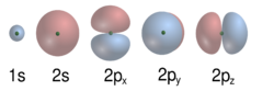 A consequence of describing electrons as waveforms is that it is mathematically impossible to simultaneously derive the position and momentum of an electron. This became known as the Heisenberg uncertainty principle after the theoretical physicist Werner Heisenberg, who first published a version of it in 1927.[61] (Heisenberg analyzed a thought experiment where one attempts to measure an electron's position and momentum simultaneously. However, Heisenberg did not give precise mathematical definitions of what the "uncertainty" in these measurements meant. The precise mathematical statement of the position-momentum uncertainty principle is due to Earle Hesse Kennard, Wolfgang Pauli, and Hermann Weyl.[62][63]) This invalidated Bohr's model, with its neat, clearly defined circular orbits. The modern model of the atom describes the positions of electrons in an atom in terms of probabilities. An electron can potentially be found at any distance from the nucleus, but, depending on its energy level and angular momentum, exists more frequently in certain regions around the nucleus than others; this pattern is referred to as its atomic orbital. The orbitals come in a variety of shapes—sphere, dumbbell, torus, etc.—with the nucleus in the middle.[64] The shapes of atomic orbitals are found by solving the Schrödinger equation; however, analytic solutions of the Schrödinger equation are known for very few relatively simple model Hamiltonians including the hydrogen atom and the dihydrogen cation. Even the helium atom—which contains just two electrons—has defied all attempts at a fully analytic treatment.[65][66][67]