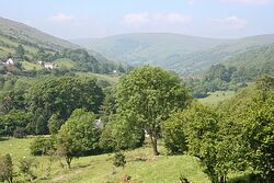Examples in Northern England, such as Glenridding, Westmorland, or Glendue, near Haltwhistle, Northumberland, are thought to derive from the aforementioned Cumbric cognate, or another Brythonic equivalent.[2] This likely underlies some examples in Southern Scotland.[2]