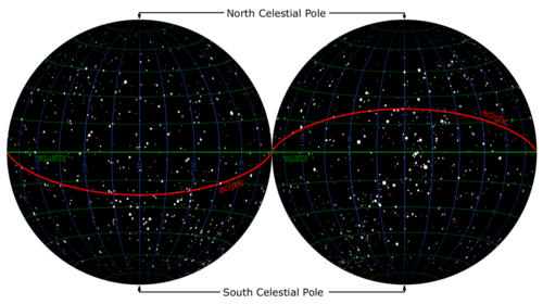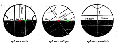 An old term, right ascension (Latin: ascensio recta)[2] refers to the ascension, or the point on the celestial equator that rises with any celestial object as seen from Earth's equator, where the celestial equator intersects the horizon at a right angle. It contrasts with oblique ascension, the point on the celestial equator that rises with any celestial object as seen from most latitudes on Earth, where the celestial equator intersects the horizon at an oblique angle.[3]