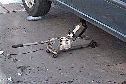 A jack is a mechanical lifting device used to apply great forces or lift heavy loads. A mechanical jack employs a screw thread for lifting heavy equipment. A hydraulic jack uses hydraulic power.[1] The most common form is a car jack, floor jack or garage jack, which lifts vehicles so that maintenance can be performed. Jacks are usually rated for a maximum lifting capacity (for example, 1.5 tons or 3 tons). Industrial jacks can be rated for many tons of load.