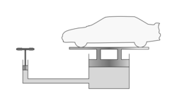 An air hydraulic jack is a hydraulic jack that is actuated by compressed air - for example, air from a compressor - instead of human work. This eliminates the need for the user to actuate the hydraulic mechanism, saving effort and potentially increasing speed. Sometimes, such jacks are also able to be operated by the normal hydraulic actuation method, thereby retaining functionality, even if a source of compressed air is not available.