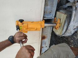 An inflatable jack, lifting bag, or pneumatic lifting bag is an air bag that is inflated by compressed air (without a hydraulic component) in order to lift objects. The bag can be deflated to be reused later. The objects can be of a smaller load such as an automobile[10] or it can be a larger object such as an airplane.[11]