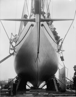 The sloop Mayflower was the second America's Cup defender designed by Edward "Ned" Burgess, built by George Lawley & Son and launched in 1886 for owner General Charles J. Paine of Boston. It was built entirely of wood: oak and hard pine. She was skippered by Martin V. B. Stone.[1]:p129 Her sails were made by John H. McManus of McManus & Son.[2]