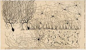 The neuron doctrine is the concept that the nervous system is made up of discrete individual cells, a discovery due to decisive neuro-anatomical work of Santiago Ramón y Cajal and later presented by, among others, H. Waldeyer-Hartz.[1] The term neuron (spelled neurone in British English) was itself coined by Waldeyer as a way of identifying the cells in question. The neuron doctrine, as it became known, served to position neurons as special cases under the broader cell theory evolved some decades earlier. He appropriated the concept not from his own research but from the disparate observation of the histological work of Albert von Kölliker, Camillo Golgi, Franz Nissl, Santiago Ramón y Cajal, Auguste Forel and others.[2][3]