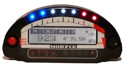 A shift light is a warning lamp fitted to vehicles in order to indicate to the driver that maximum revolutions per minute (r/min) has almost been reached. Ideally a shift lamp will illuminate at the engine speed beyond that which delivers the maximum power, measured in for example kilowatt (kW) or brake horsepower (bhp), such that the power before and after shifting is the same. Accelerating the engine beyond this point is not conducive to ideal acceleration. In use a shift light allows the driver to judge the exact point that a gear change should be carried out without having to glance down at the tachometer. This also increases safety for the driver by keeping their focus near the track at all times.[1][unreliable source?]