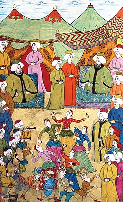 The Ottoman Empire had a wide variety of Islamic sects, including Druze, Ismailis, Alevis, and Alawites.[232] Sufism, a diverse body of Islamic mysticism, found fertile ground in Ottoman lands; many Sufi religious orders (tariqa), such as the Bektashi and Mevlevi, were either established, or saw significant growth, throughout the empire's history.[233] However, some heterodox Muslim groups were viewed as heretical and even ranked below Jews and Christians in terms of legal protection; Druze were frequent targets of persecution,[234] with Ottoman authorities often citing the controversial rulings of Ibn Taymiyya, a member of the conservative Hanbali school.[235] In 1514, Sultan Selim I ordered the massacre of 40,000 Anatolian Alevis (Qizilbash), whom he considered a fifth column for the rival Safavid Empire.