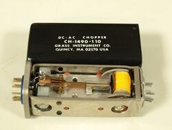 Before the development of switch-mode power supplies and the introduction of semiconductor devices operating off low voltage, there was a requirement to generate voltages of about 50 to 250 V DC from a vehicle's battery. A vibrator was used to provide pulsating DC which could be converted to a higher voltage with a transformer, rectified, and filtered to create higher-voltage DC. It is essentially a relay using normally closed contacts to supply power to the relay coil, thus immediately breaking the connection, only to be reconnected very quickly through the normally closed contacts. It happens so rapidly it vibrates, and sounds like a buzzer. This same rapidly pulsing contact applies the rising and falling DC voltage to the transformer which can step it up to a higher voltage.[1]