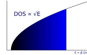 In 1-dimensional systems the DOS diverges at the bottom of the band as [math]\displaystyle{ E }[/math] drops to [math]\displaystyle{ E_0 }[/math]. In 2-dimensional systems the DOS turns out to be independent of [math]\displaystyle{ E }[/math]. Finally for 3-dimensional systems the DOS rises as the square root of the energy.[4]