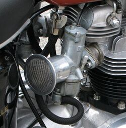 ![]() Triple Amal Concentric carburettors fitted to a Triumph Trident | |