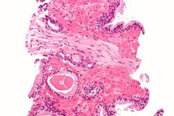 Within the endoneurium, the individual nerve fibres are surrounded by a low-protein liquid called endoneurial fluid. This acts in a similar way to the cerebrospinal fluid in the central nervous system and constitutes a blood-nerve barrier similar to the blood–brain barrier.[3] Molecules are thereby prevented from crossing the blood into the endoneurial fluid. During the development of nerve edema from nerve irritation (or injury), the amount of endoneurial fluid may increase at the site of irritation. This increase in fluid can be visualized using magnetic resonance neurography, and thus MR neurography can identify nerve irritation and/or injury.