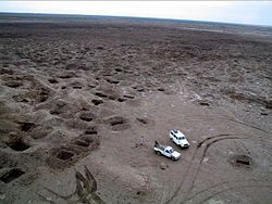 By 1922 the site had been suggested as that of Isin.[4] Ishan al-Bahriyat was visited by Stephen Herbert Langdon for a day to conduct a sounding, while he was excavating at Kish in 1924. He found inscribed bricks of Ishme-Dagan and Enlil-bani.[5] Two years later Raymond P. Dougherty, on behalf of the American Schools of Oriental Research, conducted a two day survey of the site finding inscribed bricks of Bur-Sin and Neo-Babylonian ruler Nebuchadnezzar II.[6][7][8]