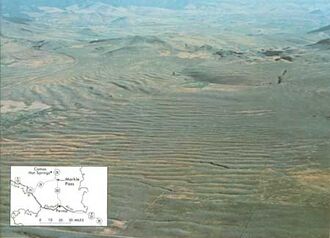 During the last deglaciation that followed the end of the Last Glacial Maximum, geologists estimate that a cycle of flooding and reformation of the lake lasted an average of 55 years and that the floods occurred several times over the 2,000-year period between 15,000 and 13,000 years ago. U.S. Geological Survey hydrologist Jim O'Connor and Spanish Center of Environmental Studies scientist Gerard Benito have found evidence of at least twenty-five massive floods, the largest discharging ≈10 cubic kilometers per hour (2.7 million m³/s, 13 times the Amazon River).[1] Alternate estimates for the peak flow rate of the largest flood include 17 cubic kilometers per hour[2] and range up to 60 cubic kilometers per hour.[3] The maximum flow speed approached 36 meters/second (130 km/h or 80 mph).[2]