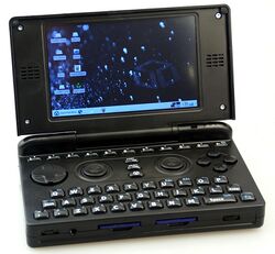 The Pandora is a handheld game console/UMPC/PDA hybrid designed to take advantage of existing open source software and to be a target for home-brew development. It runs a full distribution of Linux, and in functionality is like a small PC with gaming controls. It is developed by OpenPandora, which is made up of former distributors and community members of the GP32 and GP2X handhelds.