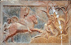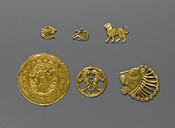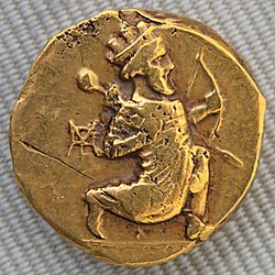 King Croesus of Lydia sought to take advantage of the new international situation by advancing into what had previously been Median territory in Asia Minor.[35][36] Cyrus led a counterattack which not only fought off Croesus' armies, but also led to the capture of Sardis and the fall of the Lydian Kingdom in 546 BC.[37][38][lower-alpha 3] Cyrus placed Pactyes in charge of collecting tribute in Lydia and left, but once Cyrus had left Pactyes instigated a rebellion against Cyrus.[38][39][40] Cyrus sent the Median general Mazares to deal with the rebellion, and Pactyes was captured. Mazares, and after his death Harpagus, set about reducing all the cities which had taken part in the rebellion. The subjugation of Lydia took about four years in total.[41]