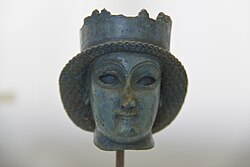 The Achaemenids were initially rulers of the Elamite city of Anshan near the modern city of Marvdasht;[26] the title "King of Anshan" was an adaptation of the earlier Elamite title "King of Susa and Anshan".[27] There are conflicting accounts of the identities of the earliest Kings of Anshan. According to the Cyrus Cylinder (the oldest extant genealogy of the Achaemenids) the kings of Anshan were Teispes, Cyrus I, Cambyses I and Cyrus II, also known as Cyrus the Great, who founded the empire.[26] The later Behistun Inscription, written by Darius the Great, claims that Teispes was the son of Achaemenes and that Darius is also descended from Teispes through a different line, but no earlier texts mention Achaemenes.[28] In Herodotus' Histories, he writes that Cyrus the Great was the son of Cambyses I and Mandane of Media, the daughter of Astyages, the king of the Median Empire.[29]