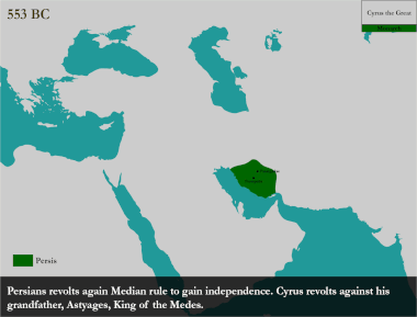 Around the 7th century BC, the region of Persis in the southwestern portion of the Iranian plateau was settled by the Persians.[16] From Persis, Cyrus rose and defeated the Median Empire as well as Lydia and the Neo-Babylonian Empire, marking the formal establishment of a new imperial polity under the Achaemenid dynasty.