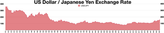 Beginning in 2022 the Yen rate has become increasingly weaker with each passing month. As a result, the yen fell to the 151 yen level against the US dollar, marking the first depreciation of the yen in 32 years on a nominal effective exchange rate and the first depreciation on a real effective exchange rate in 52 years. The reasoning behind this is the US moving towards higher interest rates, while Japan remains "ultra-low". Other factors include the strength of the US economy and its labor market, while Japan continues to lag behind its peers to bring its economy back to its pre-pandemic size. Japan's trade balance staying in the red is also likely feeding into the weaker yen.[8] Interviewed by Asahi Shimbun Digital in September 2022, Izuru Kato, chief economist at Totan Research, expressed concern about the sharp fall in its value since 2022.[9] and Moneypost reported that the exchange rate instability had made it impossible to exchange the currency for Japanese yen at some exchange offices.[68] With the rate returning to ¥150 in November 2023, concern deepened as Nikkei sources expected the yen to depreciate further in the future.[69] The Economist (London) expressed concern over the performance of the Bank of Japan, suggested that a systemic risk is posed to the world financial system.[10]