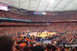 Just north is the headquarters of SU Athletics, the John A. Lally Athletics Complex, formerly known as Manley Field House.[95][96] Named after alumnus John Lally, the academic and athletics village is home to 20 Syracuse University athletics teams.[95] The complex is surrounded by other athletic facilities, including the Carmelo K. Anthony Basketball Center, J.S. Coyne Stadium, Ensley Athletic Center, and SU Soccer Stadium.[94]