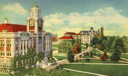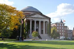 Syracuse University (informally 'Cuse or SU)[10] is a private research university in Syracuse, New York, United States. Established in 1870 with roots in the Methodist Episcopal Church, the university has been nonsectarian since 1920.[11] Located in the city's University Hill neighborhood, east and southeast of Downtown Syracuse, the large campus features an eclectic mix of architecture, ranging from nineteenth-century Romanesque Revival to contemporary buildings. Syracuse University is organized into 13 schools and colleges and is classified among "R1: Doctoral Universities – Very high research activity".[12]