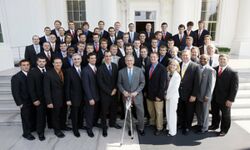 Syracuse University athletic teams, the Orange, participate in 20 intercollegiate sports. SU is a member of the Atlantic Coast Conference (ACC) for all NCAA Division I athletics,[13] except for the men's rowing and women's ice hockey teams.[14][15] SU is also a member of the Eastern College Athletic Conference.[16] Alumni, faculty, and affiliates include President Joe Biden, three Nobel Prize laureates, one Fields Medalist, 36 Olympic Medalists, thirteen Pulitzer Prize recipients, Academy Award winners, Grammy Award winners, two Rhodes Scholars, six Marshall Scholars, governors, and members of the U.S. Senate and House of Representatives.