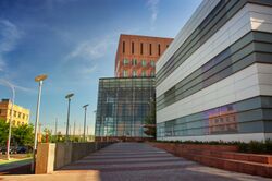 Since 2009, the Syracuse Center of Excellence in Environmental and Energy Systems, led by Syracuse University in partnership with Clarkson University and the State University of New York College of Environmental Science and Forestry, creates innovations in environmental and energy technologies that improve human health and productivity, security, and sustainability in urban and built environments.[97][98] The Paul Robeson Performing Arts Company and the Community Folk Art Center will also be located downtown. On March 31, 2006, the university and the city announced an initiative to connect the main campus of the university with the arts and culture areas of downtown Syracuse and The Warehouse.[99] Using natural gas, the Green Data Center generates its electricity on-site, providing cooling for servers and for a neighboring building.[100]