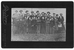 John Pike, for whom Pike Street is named, was the university's architect and builder.[15] It was opened on November 4, 1861, as the Territorial University of Washington. The legislature passed articles incorporating the university, and establishing its Board of Regents in 1862. The school initially struggled, closing three times: in 1863 for low enrollment, and again in 1867 and 1876 for shortage of funds. Washington awarded its first graduate Clara Antoinette McCarty Wilt in 1876, with a bachelor's degree in science.[16]