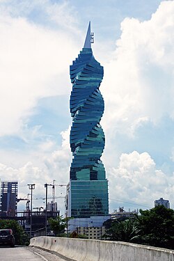 Panama's old quarter (or Casco Viejo, Panama) features many architectural styles, from Spanish colonial buildings to French and Antillean townhouses built during the construction of the Panama Canal.[23] The more modern areas of the city have many high-rise buildings, which together form a very dense skyline. There are more than 110 high-rise projects under construction, with 127 already built.[24] The city holds the 45th place in the world by high-rise buildings count.[25]