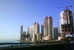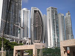 Panama's old quarter (or Casco Viejo, Panama) features many architectural styles, from Spanish colonial buildings to French and Antillean townhouses built during the construction of the Panama Canal.[19] The more modern areas of the city have many high-rise buildings, which together form a very dense skyline. There are more than 110 high-rise projects under construction, with 127 already built.[20] The city holds the 45th place in the world by high-rise buildings count.[21]