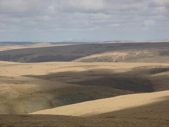 Moorland or moor is a type of habitat found in upland areas in temperate grasslands, savannas, and shrublands and montane grasslands and shrublands biomes, characterised by low-growing vegetation on acidic soils. Moorland, nowadays, generally means uncultivated hill land (such as Dartmoor in South West England), but also includes low-lying wetlands (such as Sedgemoor, also South West England). It is closely related to heath, although experts disagree on what precisely distinguishes these types of vegetation. Generally, moor refers to highland and high rainfall zones, whereas heath refers to lowland zones which are more likely to be the result of human activity.[1] Moorland habitats mostly occur in tropical Africa, northern and western Europe, and neotropical South America. Most of the world's moorlands are diverse ecosystems. In the extensive moorlands of the tropics, biodiversity can be extremely high. Moorland also bears a relationship to tundra (where the subsoil is permafrost or permanently frozen soil),[1][dubious ] appearing as the tundra and the natural tree zone. The boundary between tundra and moorland constantly shifts with climatic change.