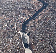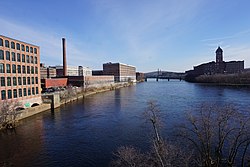 Lawrence is a city located in Essex County, Massachusetts, United States, on the Merrimack River. At the 2020 census, the city had a population of 89,143.[2] Surrounding communities include Methuen to the north, Andover to the southwest, and North Andover to the east. Lawrence and Salem were the county seats of Essex County, until the state abolished county government in 1999.[3] Lawrence is part of the Merrimack Valley.