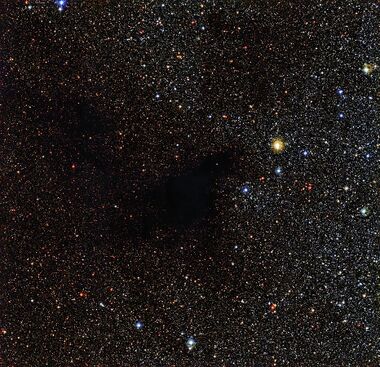The amount of extinction can be significantly higher than this in specific directions. For example, some regions of the Galactic Center are awash with obvious intervening dark dust from our spiral arm (and perhaps others) and themselves in a bulge of dense matter, causing as much as more than 30 magnitudes of extinction in the optical, meaning that less than 1 optical photon in 1012 passes through.[10] This results in the so-called zone of avoidance, where our view of the extra-galactic sky is severely hampered, and background galaxies, such as Dwingeloo 1, were only discovered recently through observations in radio and infrared.