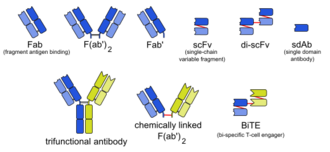 Antibody-dependent cell-mediated cytotoxicity (ADCC) requires antibodies to bind to target cell surfaces. Antibodies are formed of a binding region (Fab) and the Fc region that can be detected by immune system cells via their Fc surface receptors. Fc receptors are found on many immune system cells, including NK cells. When NK cells encounter antibody-coated cells, the latter's Fc regions interact with their Fc receptors, releasing perforin and granzyme B to kill the tumor cell. Examples include rituximab, ofatumumab, elotuzumab, and alemtuzumab. Antibodies under development have altered Fc regions that have higher affinity for a specific type of Fc receptor, FcγRIIIA, which can dramatically increase effectiveness.[30][31]