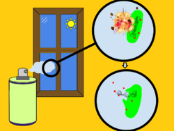 Air disinfectants are typically chemical substances capable of disinfecting microorganisms suspended in the air. Disinfectants are generally assumed to be limited to use on surfaces, but that is not the case. In 1928, a study found that airborne microorganisms could be killed using mists of dilute bleach.[20] An air disinfectant must be dispersed either as an aerosol or vapour at a sufficient concentration in the air to cause the number of viable infectious microorganisms to be significantly reduced.