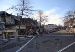 The February 2011 earthquake caused widespread damage across Christchurch, especially in the central city and eastern suburbs, with damage exacerbated by buildings and infrastructure already being weakened by the 4 September 2010 earthquake and its aftershocks. The earthquake, which struck at lunchtime on a weekday, caused devastation in the central city, with two large office buildings having collapsed (the CTV Building and the PGC House), many historic building façades had collapsed into the streets, two buses were crushed by falling façades in Colombo Street, and many people in City Mall were trapped by fallen masonry.[1] A total of 185 people died in the February earthquake, 169 died in the central zone alone: 115 in the CTV building, 18 at PGC House, 8 on buses in Colombo Street and 28 others in various CBD locations.[2][3]