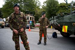 An initial cordon was established by Police and the New Zealand Army around the perimeter along the central city along Bealey Avenue, Fitzgerald Avenue, Moorhouse Avenue, Antigua Street, Rolleston Avenue, and Park Terrace.[13] Within days, cordon checkpoints were also manned by Australian Police (mostly New South Wales Police Force and Australian Federal Police) and Singapore Armed Forces.[15][16]