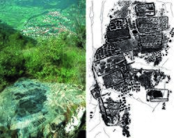 What is the earliest known map is a matter of some debate, both because the term "map" is not well-defined and because some artifacts that might be maps might actually be something else. A wall painting that might depict the ancient Anatolian city of Çatalhöyük (previously known as Catal Huyuk or Çatal Hüyük) has been dated to the late 7th millennium BCE.[1][2] Among the prehistoric alpine rock carvings of Mount Bego (France) and Valcamonica (Italy), dated to the 4th millennium BCE, geometric patterns consisting of dotted rectangles and lines are widely interpreted[3][4] in archaeological literature as depicting cultivated plots.[5] Other known maps of the ancient world include the Minoan "House of the Admiral" wall painting from c. 1600 BCE, showing a seaside community in an oblique perspective, and an engraved map of the holy Babylonian city of Nippur, from the Kassite period (14th – 12th centuries BCE).[6] The oldest surviving world maps are from 9th century BCE Babylonia.[7] One shows Babylon on the Euphrates, surrounded by Assyria, Urartu[8] and several cities, all, in turn, surrounded by a "bitter river" (Oceanus).[9] Another depicts Babylon as being north of the center of the world.[7]