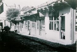 In general, bazaar shops were architecturally designed as single-story constructions, where the ground floor area was used for crafts-working, exposition, and trading area. Shortly, the same space was used for storing the raw material, manufacturing the artisanal products, and later exposing them for sale.[23] Sometimes, besides the ground floor they also had an upper floor, mostly used as depot. Only during the second half of the 19th century they had two stories above.[20] Among the shops, there were also some small cafes serving coffee, tea, and occasionally rakia.[19]