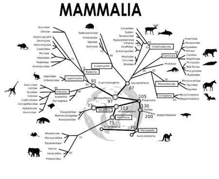 In the 2000s understanding of the relationships among eutherian mammals has experienced a virtual revolution. Molecular phylogenomics, new fossil finds and innovative morphological interpretations now group the more than 4600 extant species of eutherians into four major super-ordinal clades: Euarchontoglires (including Primates, Dermoptera, Scandentia, Rodentia, and Lagomorpha), Laurasiatheria (Cetartiodactyla, Perissodactyla, Carnivora, Chiroptera, Pholidota, and Eulipotyphla), Xenarthra, and Afrotheria (Proboscidea, Sirenia, Hyracoidea, Afrosoricida, Tubulidentata, and Macroscelidea).[4] This tree is very useful in unifying the parts of a puzzle in comparative mammalian cytogenetics.