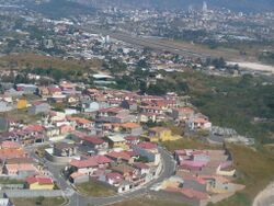 Between the 1930s and 1960s, Tegucigalpa continued to grow reaching a population of over 250,000 people, giving way to what would become one of the biggest neighborhoods in the city, the Colonia Kennedy; the nation's autonomous university, the UNAH; and the construction of the Honduras Maya Hotel.[57] It still remained relatively small and provincial until the 1970s, when migration from the rural areas began in earnest. During the 1980s, several avenues, traffic overpasses, and large buildings were erected, a relative novelty to a city characterized until then by two-story buildings.[58] However, lacking the enforcement of city planning and zoning laws, it led to highly disorganized urbanization. This lack of proper urbanization as the population has grown is evident on the surrounding slopes of the several hills in the city where some of the city's most impoverished neighborhoods have prevailed.[59]