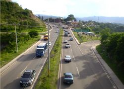 Tegucigalpa's infrastructure has not kept up with its population growth.[34] Deficient urban planning,[35] densely condensed urbanization, and poverty[36] are ongoing problems.[37] Heavily congested roadways, where road infrastructure is unable to efficiently handle over 400,000 vehicles, create havoc on a daily basis.[38] Both national and local governments have taken steps to improve and expand infrastructure as well as to reduce poverty in the city.[39][40]